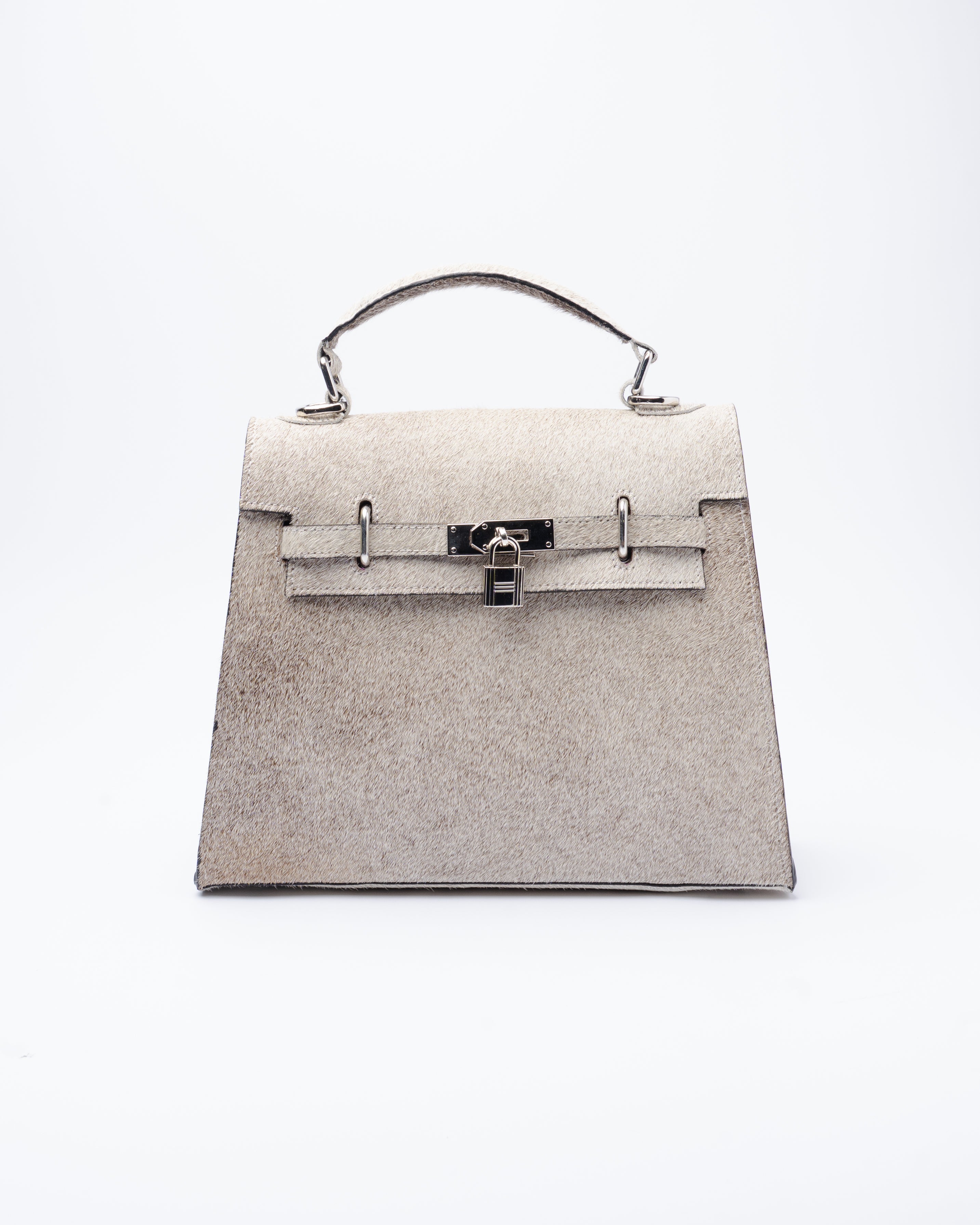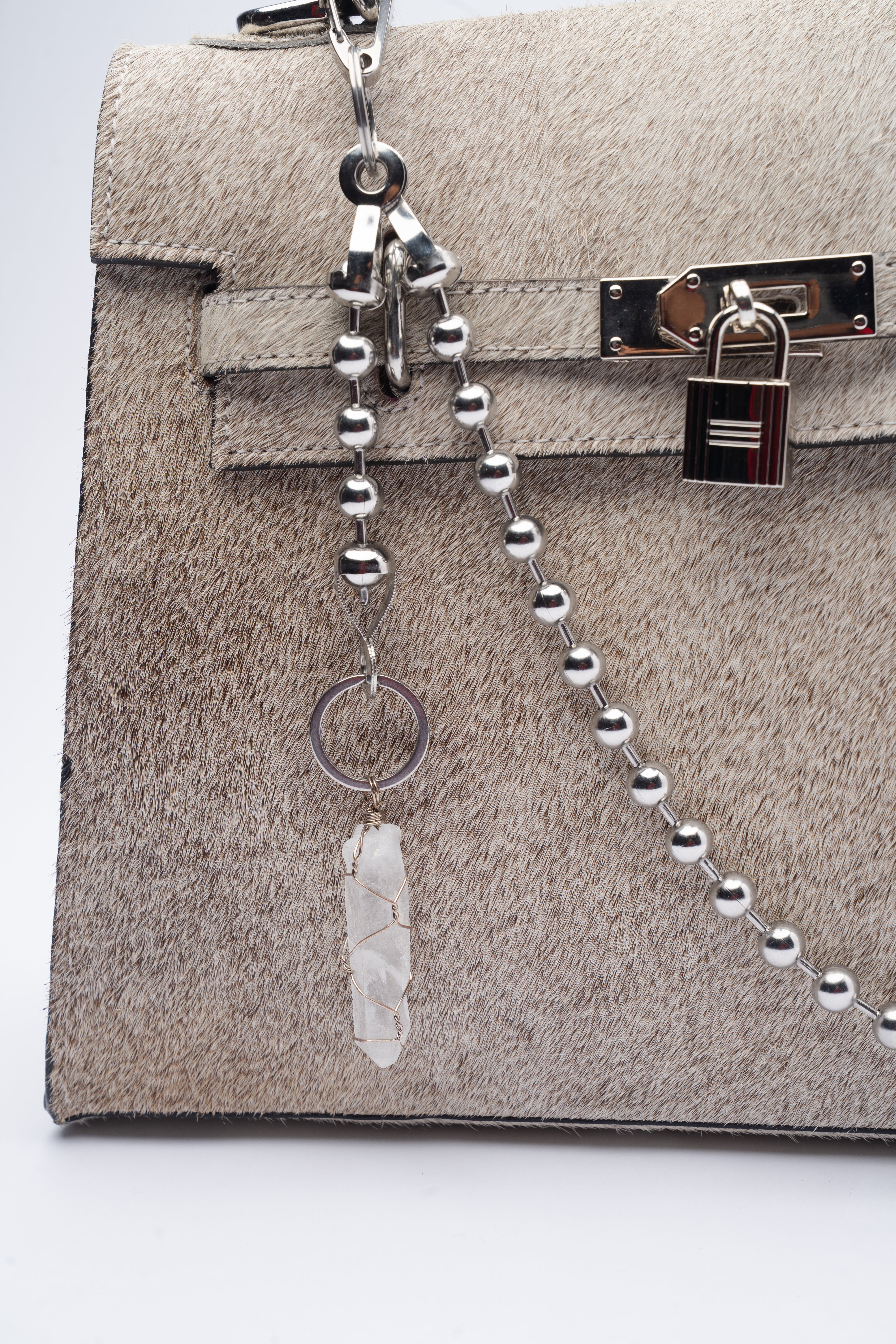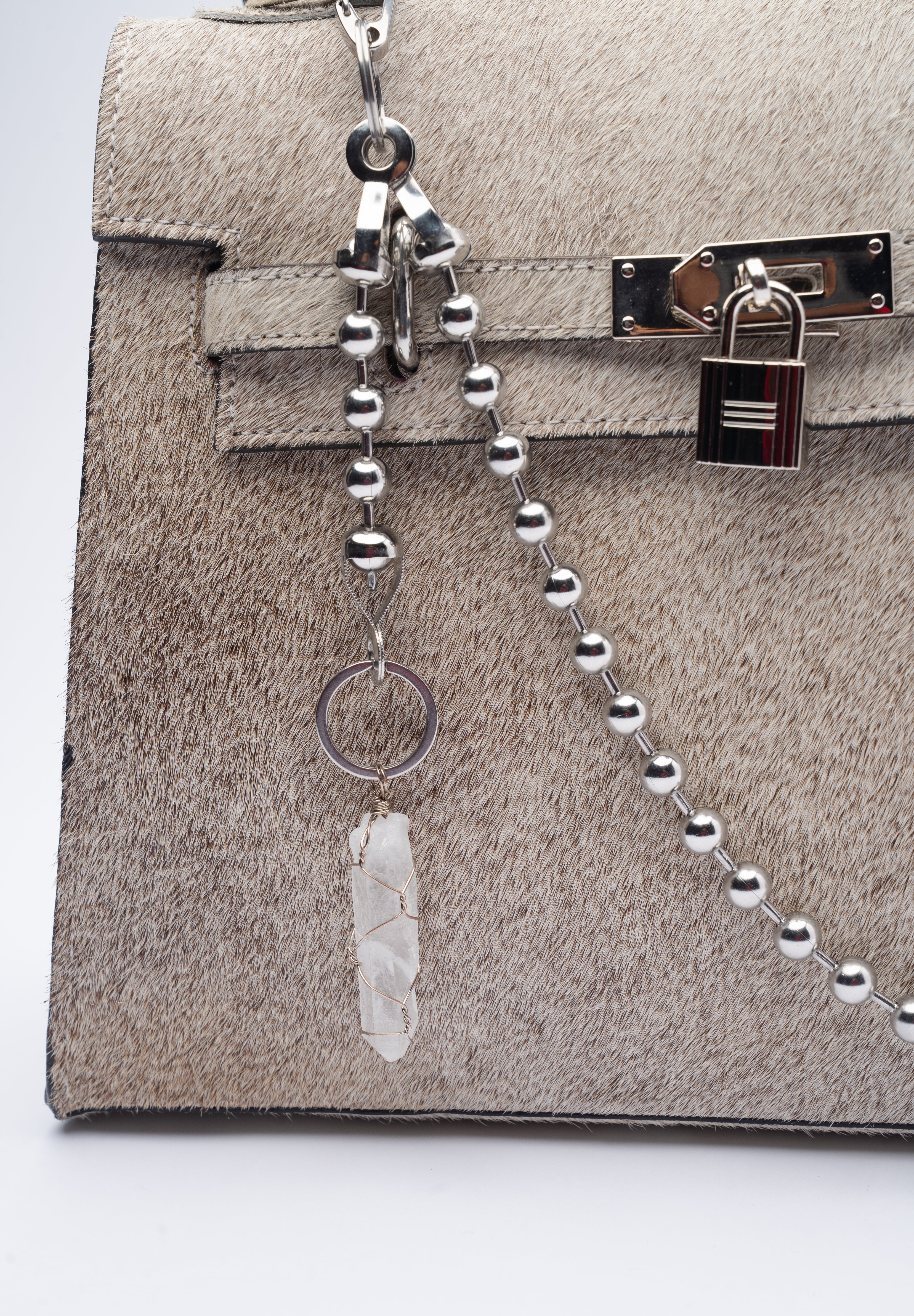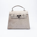 This gray cowhide handbag takes the iconic structured silhouette and gives it an unapologetic edge. Crafted from authentic cowhide, each piece carries its own unique pattern. Pairs perfectly with our handcrafted stainless steel chain charm and made to be styled your way.