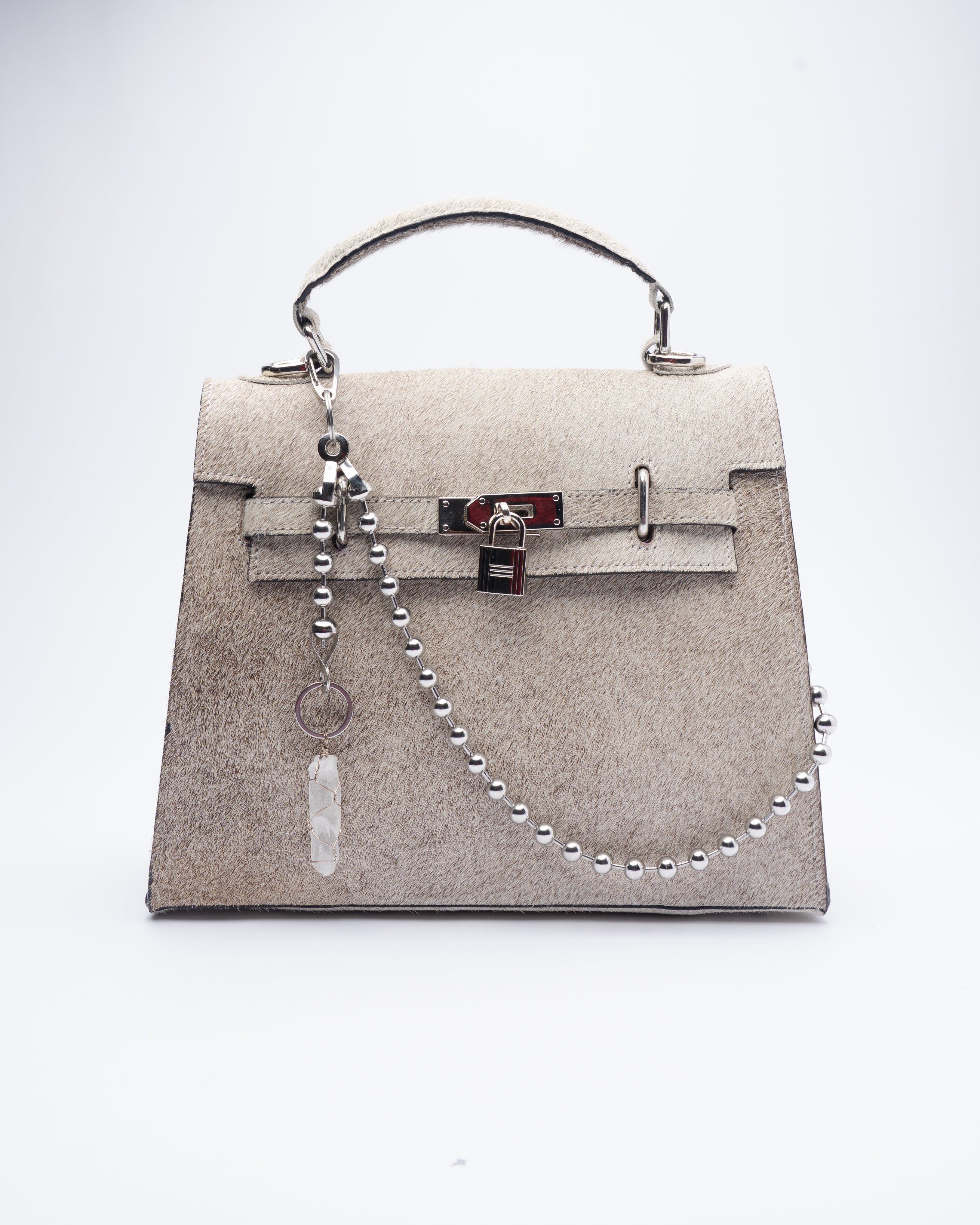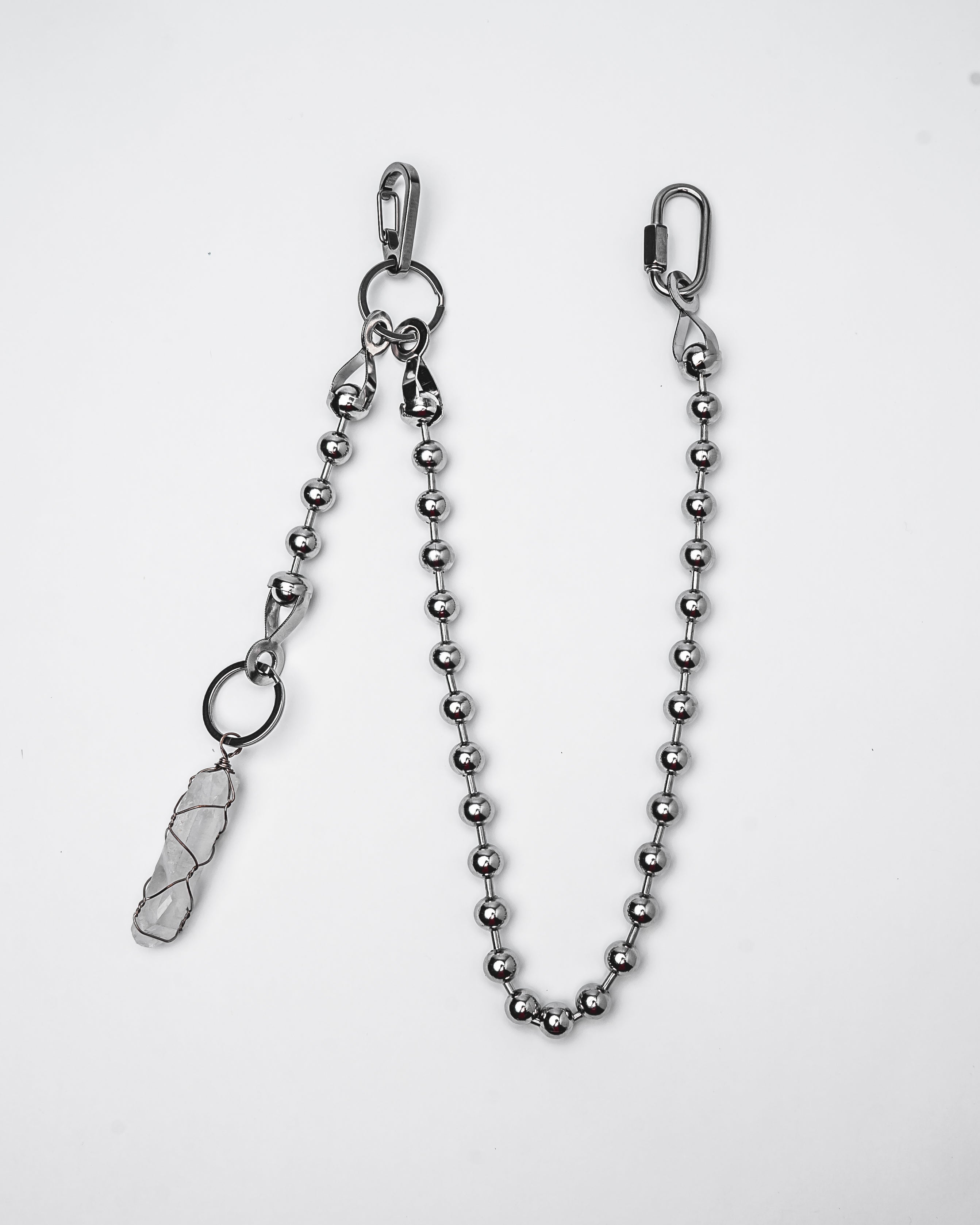 Stainless steel ball chain with quartz crystal accent.